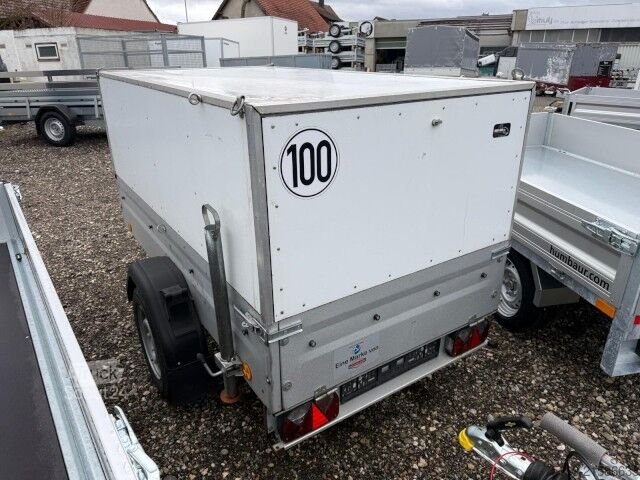 Nutzlast: 200 kg Leergewicht: 550 kg. Innenmaße: 2050 x 1100 x 1200 mm. Anhänger mit festen, wasserdichten und abschließbaren Wänden. TÜV gültig bis 05/2026. Der Preis beinhaltet die Zulassungsbescheinigung (Fahrzeugschein, Europäische Konformitätsbescheinigung). Große Auswahl an Anhängern folgender Hersteller auf Lager: Brenderup, Humbaur, Hapert, Brian James Trailers, Unsinn und Neptun. Kostenloses Kurzzeitkennzeichen auf Anfrage. Wir reparieren Anhänger aller Marken. Zusätzliches Zubehör auf Anfrage erhältlich. Technische Änderungen, Preisänderungen und Irrtümer vorbehalten. Für Fehler und Druckfehler wird keine Haftung übernommen. Blattfederachse, Kofferaufbau, Stützrad, feuerverzinkt, ungebremst.