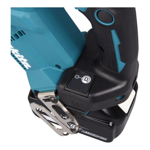 Magazinschrauber mit bürstenlosem Motor und einstellbarer Eintreibtiefe. Mit aktiviertem Push-Drive-Modus startet die Maschine automatisch durch eine Druckausübung auf den Schraubvorsatz. Dadurch wird die Leerlaufzeit miniert und verlängert die Akku-Laufzeit. Die lange Schraubenführung verhindert das Verkanten des Gurtes. Der Akku-Magazinschrauber ist für 25 bis 55 mm Schrauben geeignet.