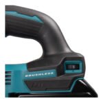 Grundplatte aus Aluminium-Druckguss beidseitig um 45° schwenkbar. Feinfühliger Schalter zur Regulierung der Drehzahl, zusätzlich via Stellrad begrenzbar. Kühlluft bläst die Schnittstelle frei. Mit 3-facher Pendelhubeinstellung plus Neutralstellung. Leichte Stichsäge mit geringer Geräuschentwicklung und geringen Vibrationen. Mit leuchtstarker Doppel-LED.