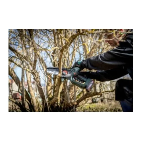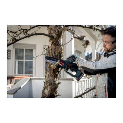 • In Kombination mit dem Teleskopstab MS (Zubehör) kann die Mini-Motorsäge wie ein Hochentaster verwendet werden