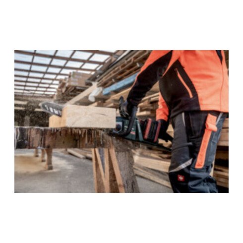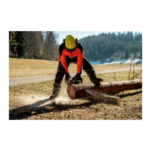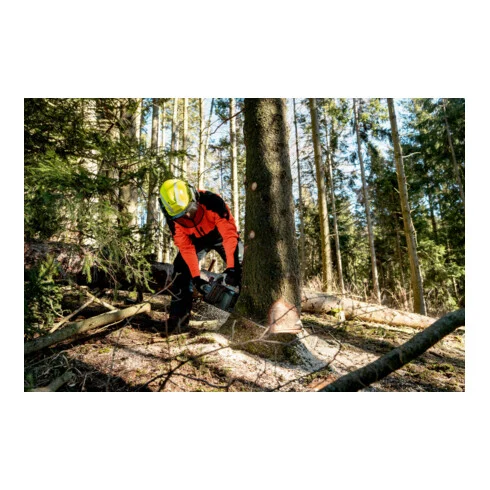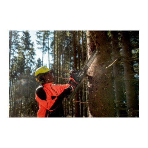 • Durchzugsstarke Akku-Motorsäge für schnelle, gleichmäßige Schnitte beim Fällen, Entasten, Ablängen und Bauen mit Holz