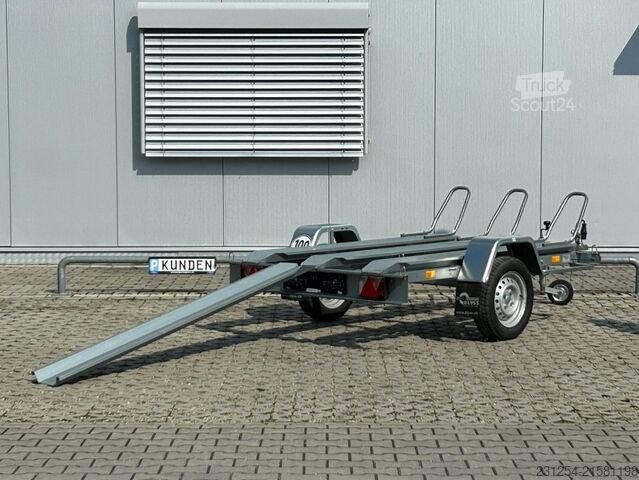 Ebenen: 3 Motorradträger mit Bügeln + 1 Laderampe