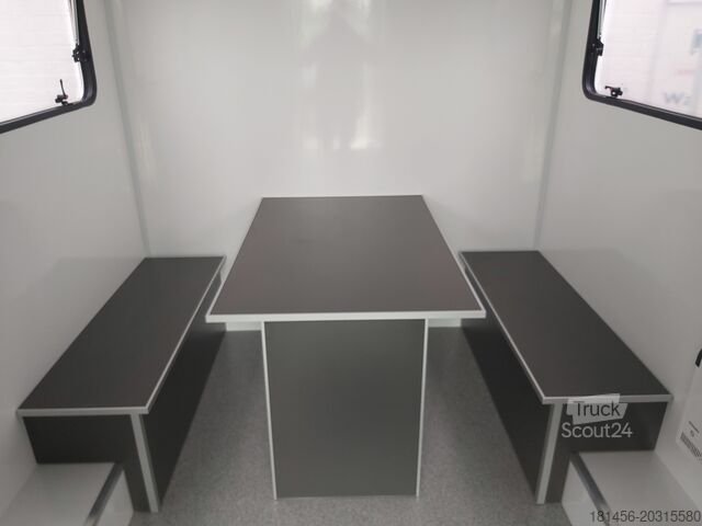 ANHÄNGERWIRTZ, der Online-Marktplatz für Ihren neuen Anhänger, bietet Top-Marken! Über 850 neue Anhänger auf Lager und über 130 gebrauchte Anhänger ständig verfügbar. Unverbindliche Beispiele: Auszug aus unserem Showroom – Mobil Office THS 300.01 ET 300x200x230 cm, 1300 kg, gebremst, niedriges Einachs-Fahrgestell, 80 km/h, 30 mm Polyester-Sandwichpaneel-Konstruktion, abgerundetes Dach vorne und hinten, PVC-Boden, seitliche Fenster (rechts und links), Eingangstür mit Aluminiumstufe, Tisch/Bank mit Staufach, Kühlschrank, Vorbereitung für Waschstation mit Wassertank, Schränke, 230-V-Anschluss mit Fehlerstromschutzschalter, Steckdosen, 230-V-Heizung, Rangiergriffe, 4 Stützbeine, Stützrad