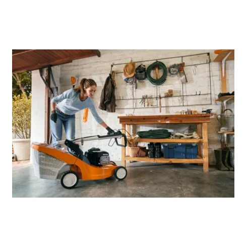 • Um ihren Rasen in Form zu bringen, können Sie die Wunschlänge Ihres Rasens über die zentrale Schnitthöhenverstellung beim STIHL RMA 448 PV in 6 Stufen von 25 mm bis 75 mm einstellen