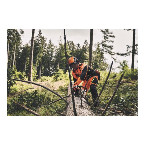 • Sie eignet sich insbesondere zum Fällen, Entasten und Aufarbeiten von Holz in mittelstarken Beständen